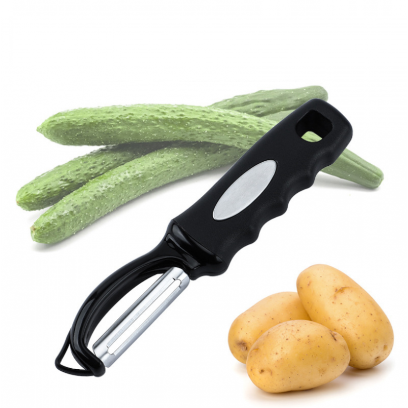 Pelapapas ergonomico negro con aplique de acero