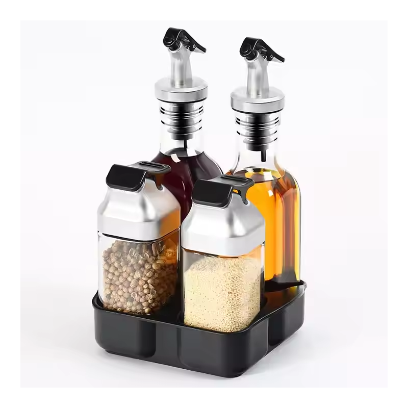 Condimentero p/ aceite vinagre sal pimienta mas soporte en set