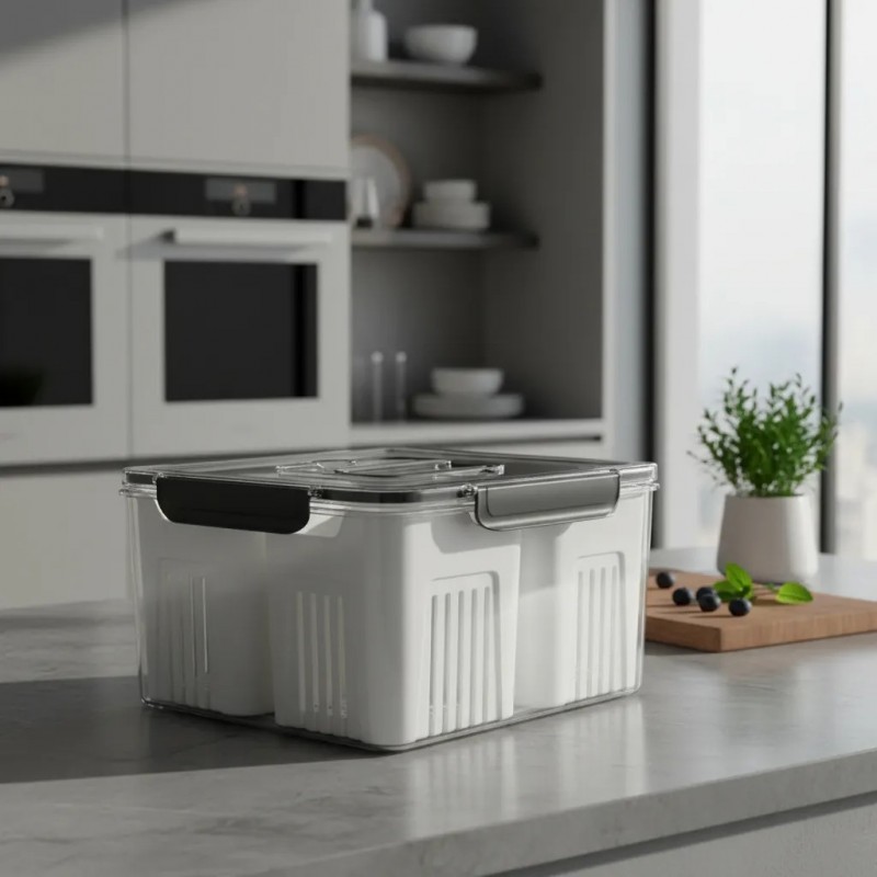 Contenedor de acrilico para vegetales y verduras 4 divisiones30.5*23.5*14.5cm