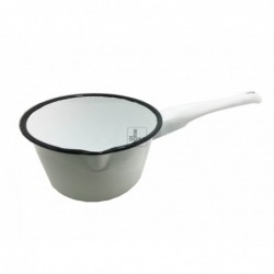 Olla con mango enlozada blanca. Diam. 17cm x 8.5cm