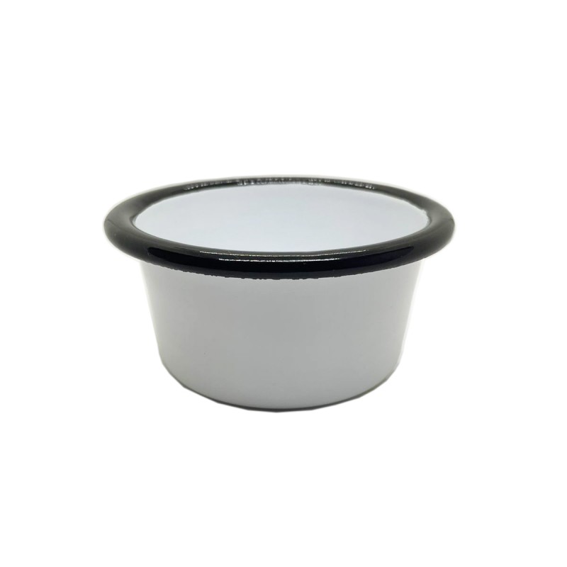 Dip enlozado blanco borde negro. Medida: Diametro 9x4cm de alto
