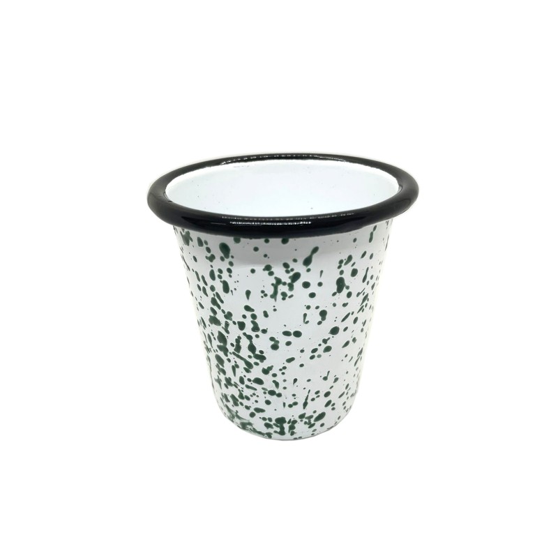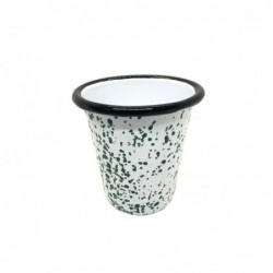 Vaso enlozado jaspeado verde. Diam.8x9cm. Caja X 6U.