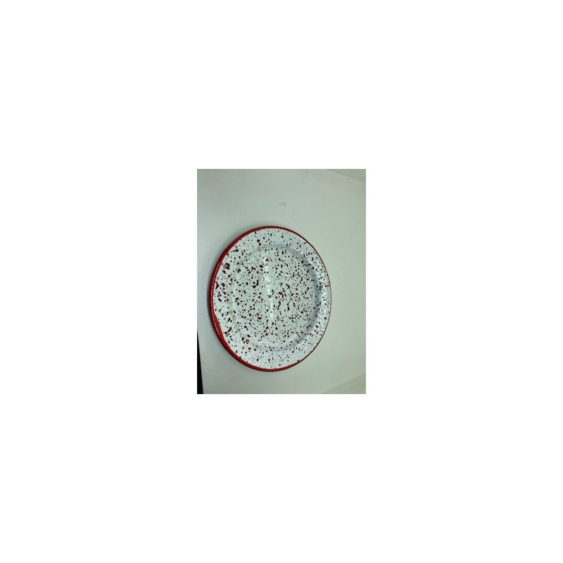 Plato playo enloz.bco y jaspeado rojo diam.25cm x 6 pzas