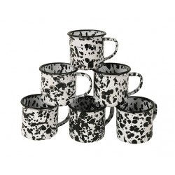 Jarro mug enlozado bco.jaspeado ngro diam.9x8cm x 6pz