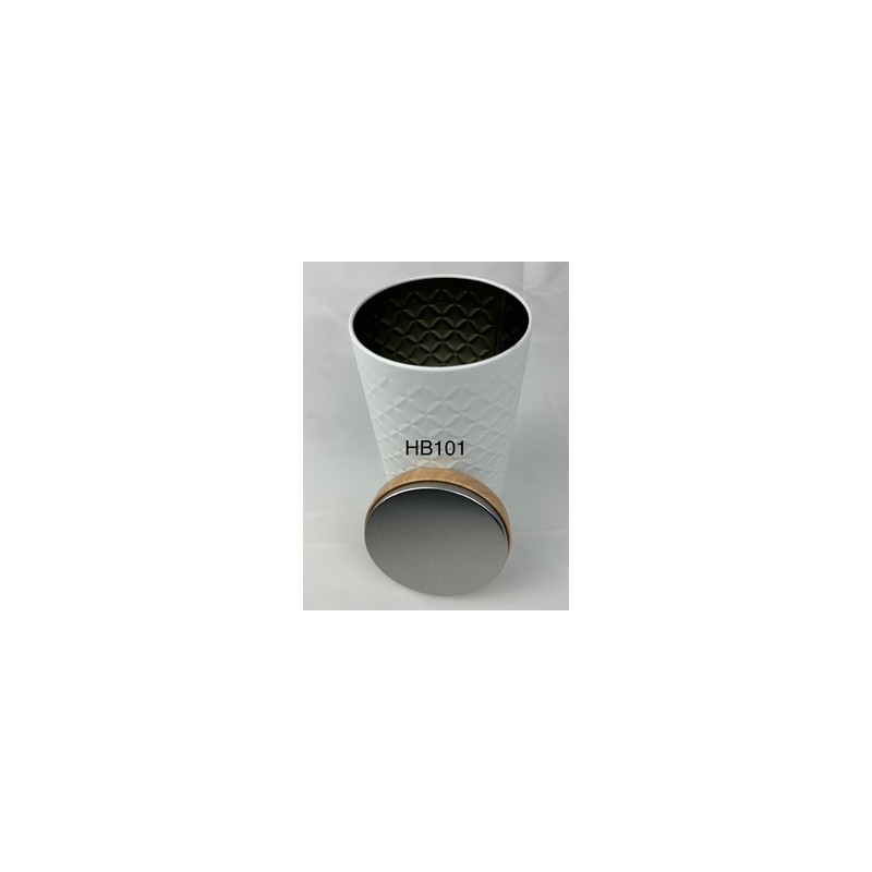 Tarro de metal bco.tapa imitacion madera 10x21cm