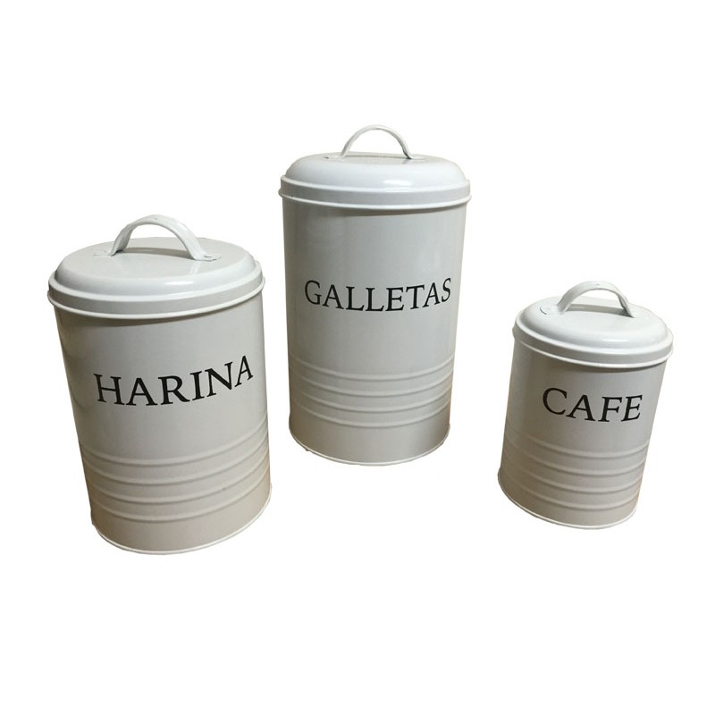 Tarro de metal blanco set x 3 GALLETAS - HARINA - CAFE