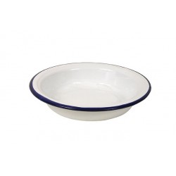 Plato hondo enlozado bca. borde azul diametro 18cmx 3