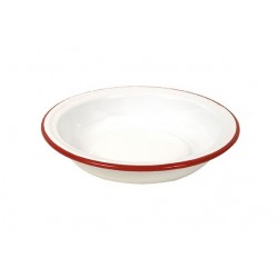 Plato hondo enlozado bca.borde rojo diametro 21cmx 4cm